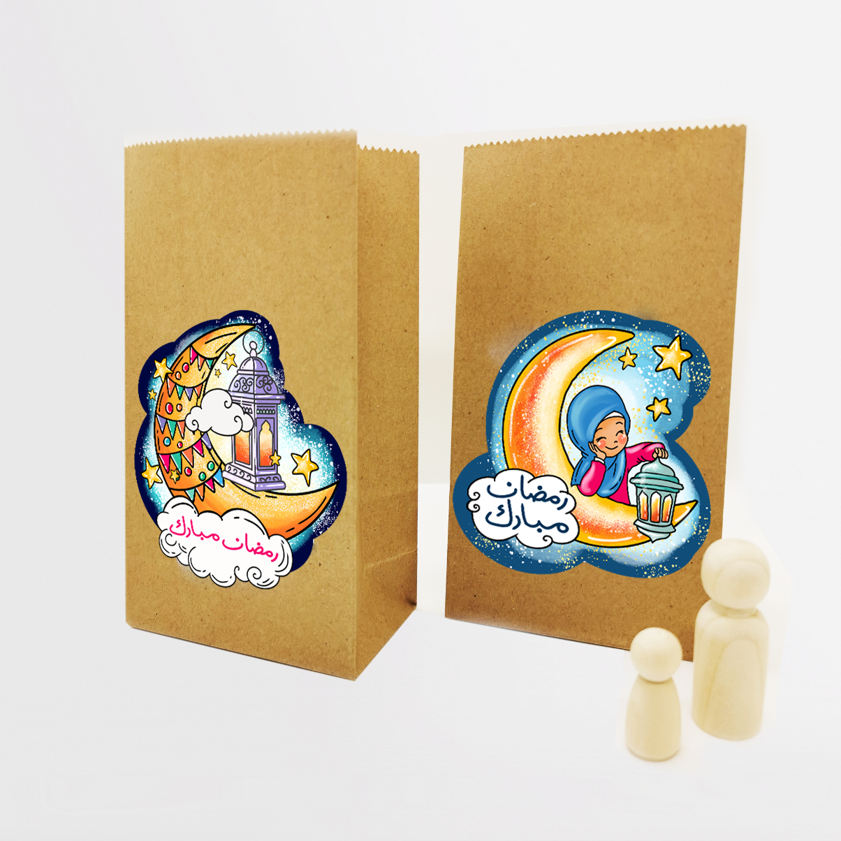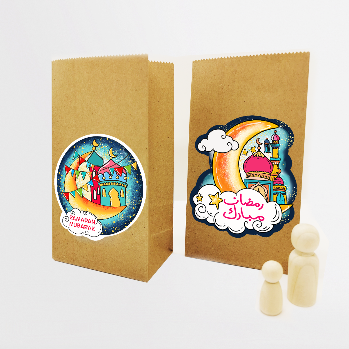 Ramadan Deko-Set bestehend aus 12 Papiergeschenktütchen mit Aufklebern.