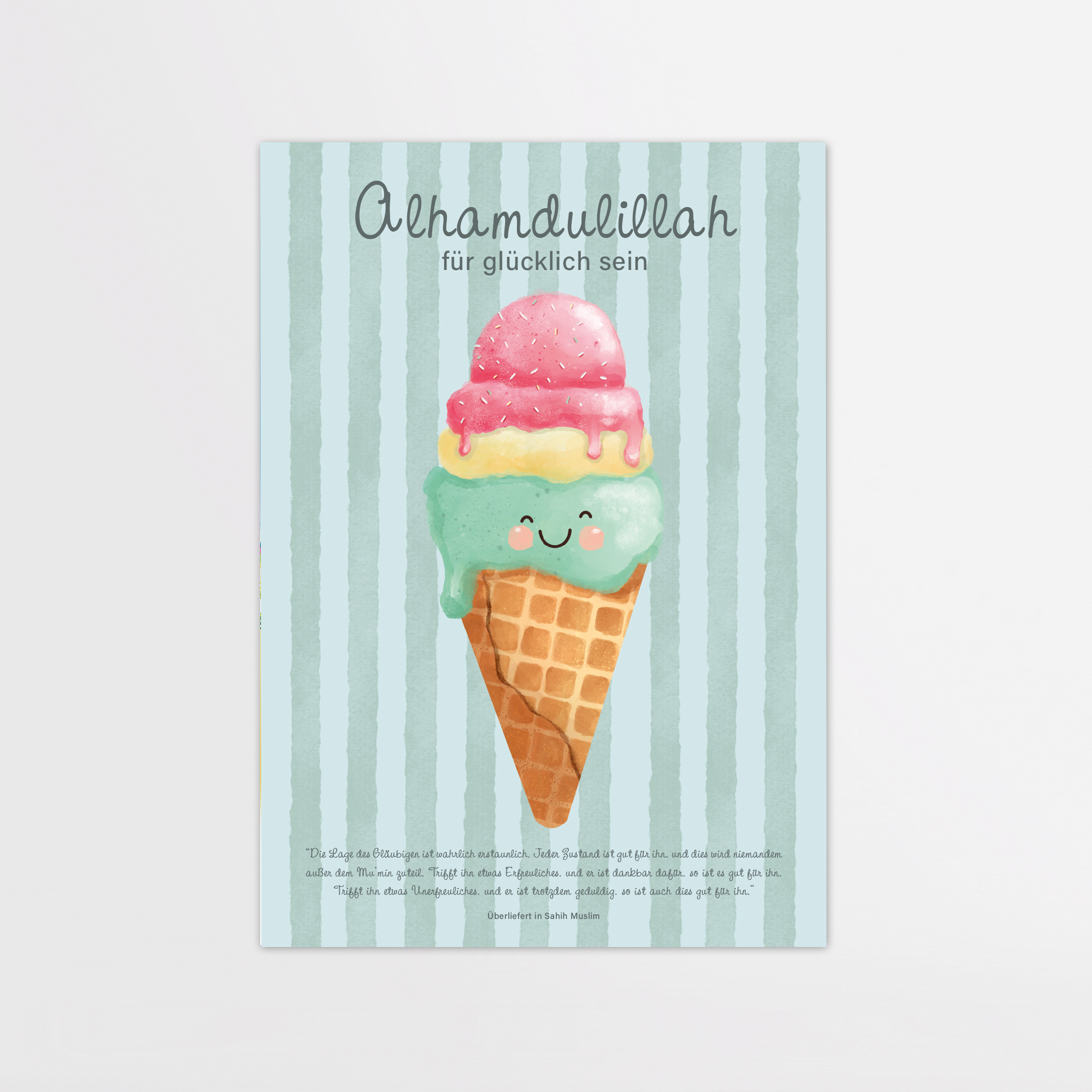 Mit diesen Postern bringt ihr nicht nur Farbe und eine fröhliche Stimmung ins Kinderzimmer. Das Posterset erinnert eure Kinder daran, dass man als Muslim in jeder Situation dankbar und geduldig bleiben soll und dafür von Allah belohnt wird.